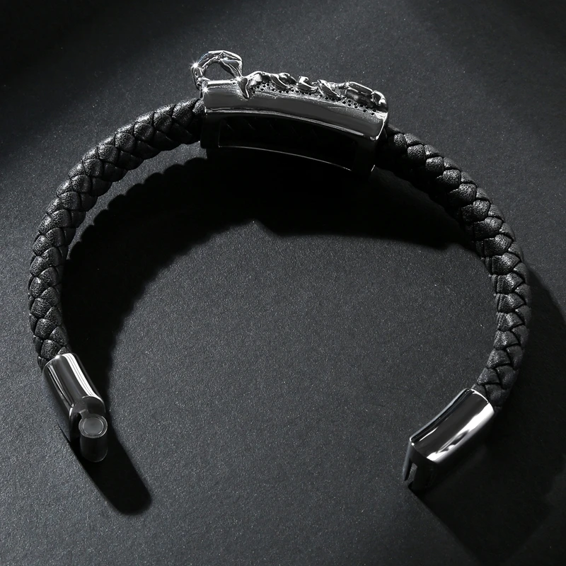 Мужской кожаный браслет в стиле панк-рок, из нержавеющей стали