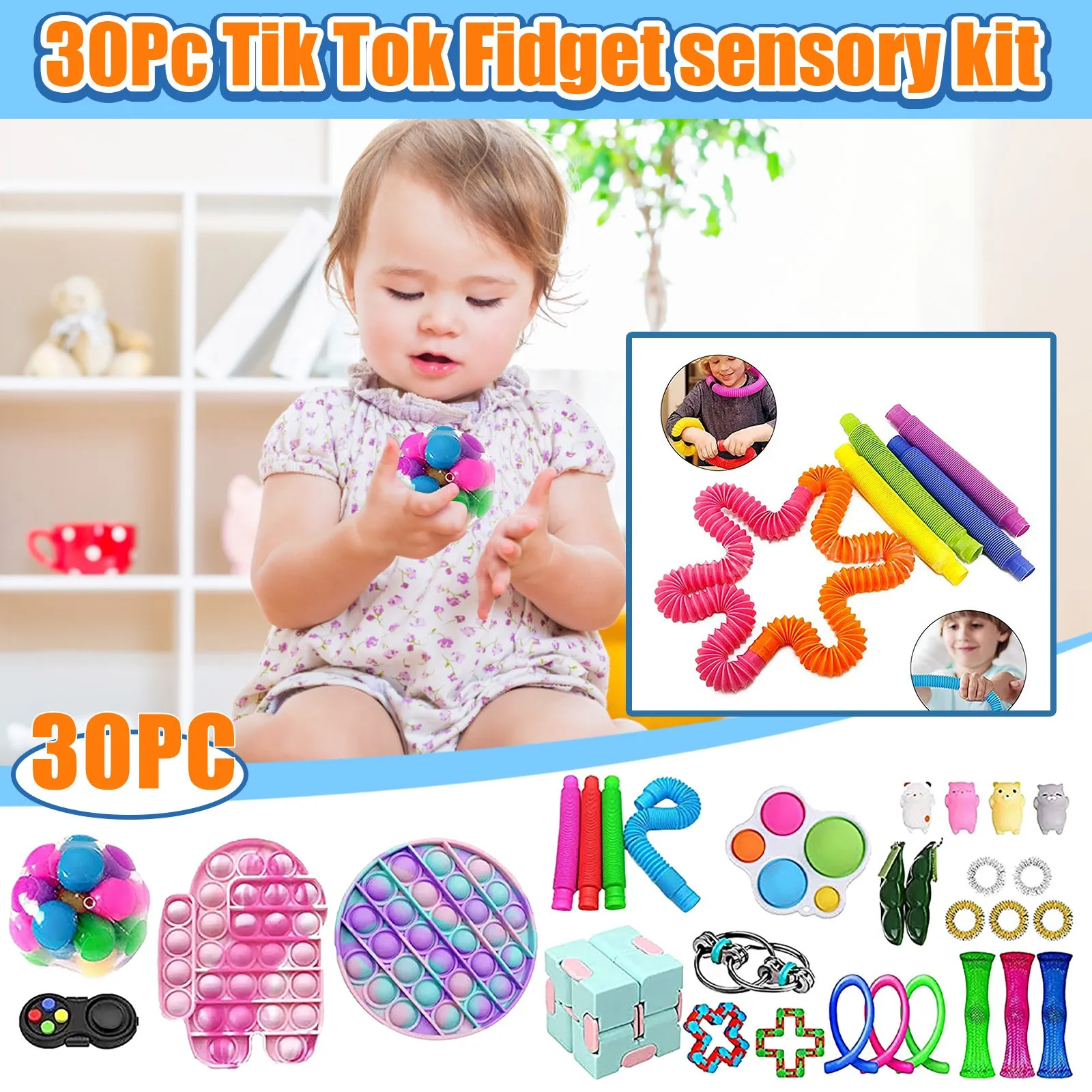 Непоседа куб игрушки, игрушка для снятия стресса в комплект эластичной струны пуш-ап подарок 30 шт. отзывчивый Vent игрушка набор праздник для аутистов для детей и взрослых