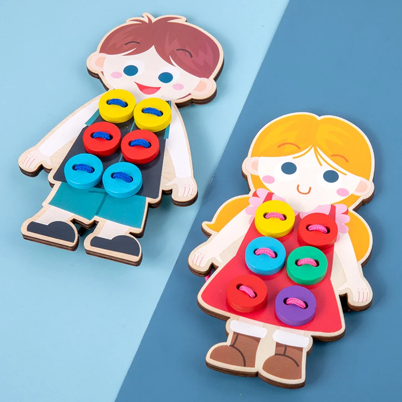 Деревянная обучающая игрушка Монтессори для детей, обучение базовым жизненным навыкам, учебное пособие, нитка, кнопка, швейная доска, сделай сам, забавная игра