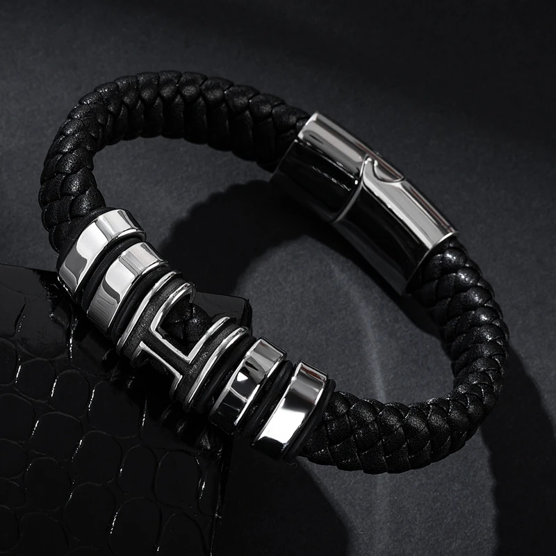 Браслет мужской кожаный, Плетеный, из нержавеющей стали, с магнитной застежкой, P119