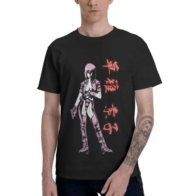 Призрак в футболка с принтом из ракушек Для мужчин's футболка Изделие из хлопка с короткими рукавами с рисунком из Аниме Манга крупных Кусанаги футболка GITS Мотоко классная футболка Tee