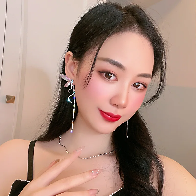 Новинка 2021, модные длинные металлические висячие серьги с кисточками, элегантные женские серьги-бабочки для моделирования, темперамент Джокера