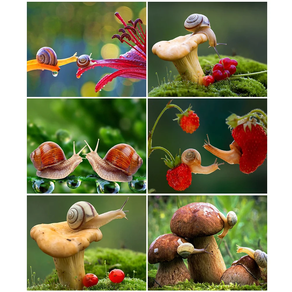 Алмазная живопись 5D сделай сам с клубникой, улиткой, насекомым, грибом, пейзаж, Набор для вышивки крестиком, Алмазная мозаика, украшение, подарок