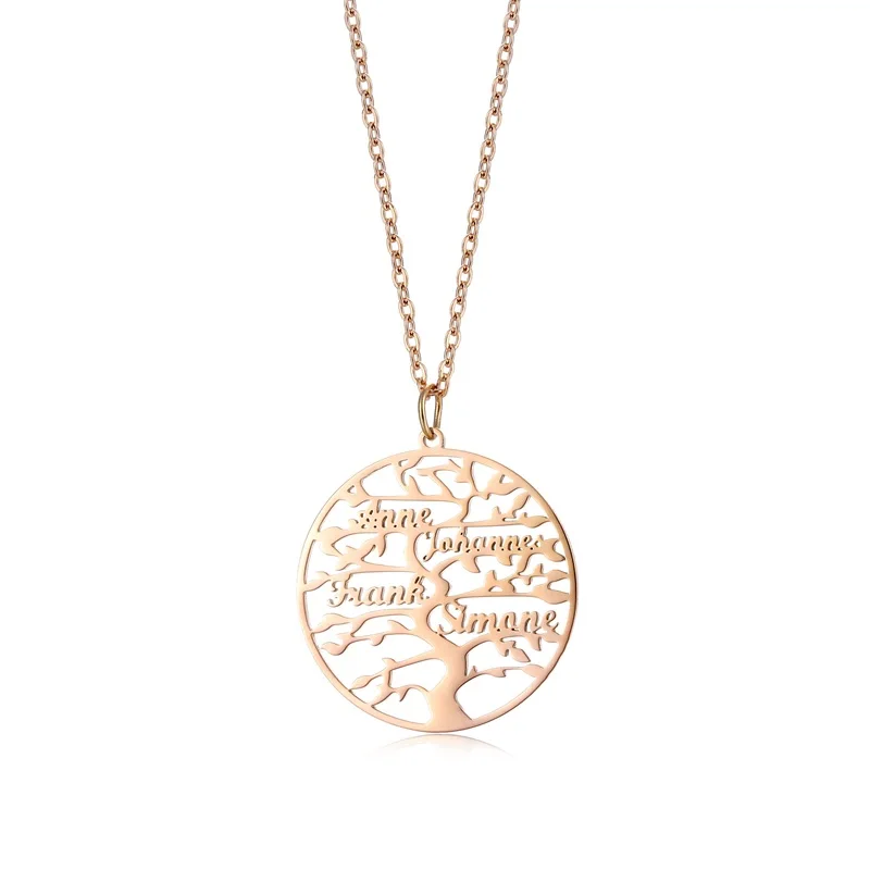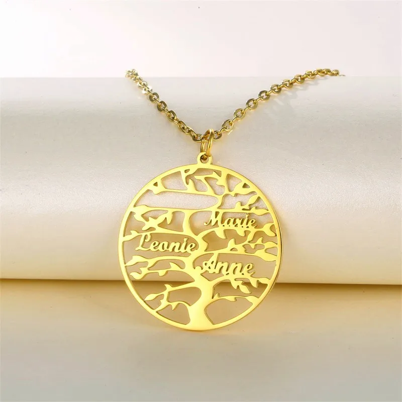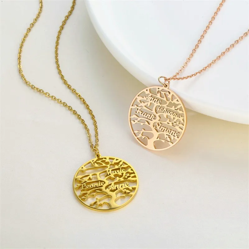 Персонализированные Древо жизни пользовательское имя ожерелье в золотом цвете из нержавеющей стали подвеска в виде генеалогического дерева для женщин Письмо ожерелья ювелирных изделий Рождественский подарок