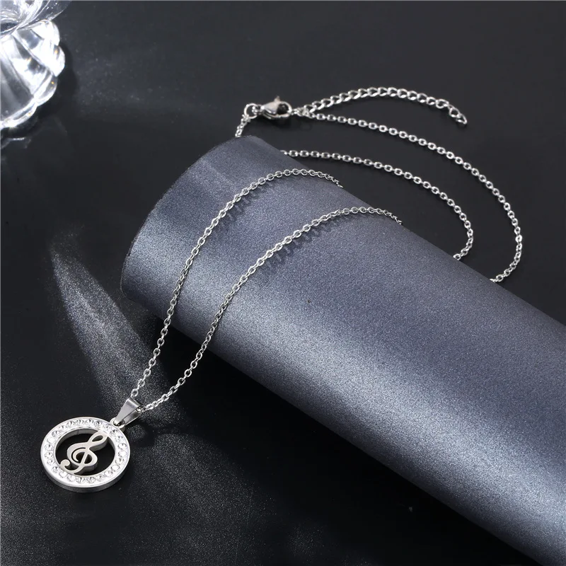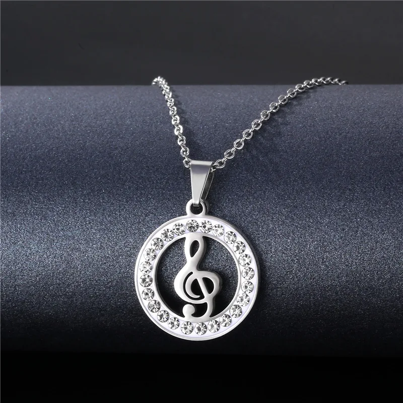 Музыкальное ожерелье в виде музыкальной ноты из нержавеющей стали, классическое Хрустальное женское ожерелье с музыкальным символом для учеников, студентов, подарок на выпускной