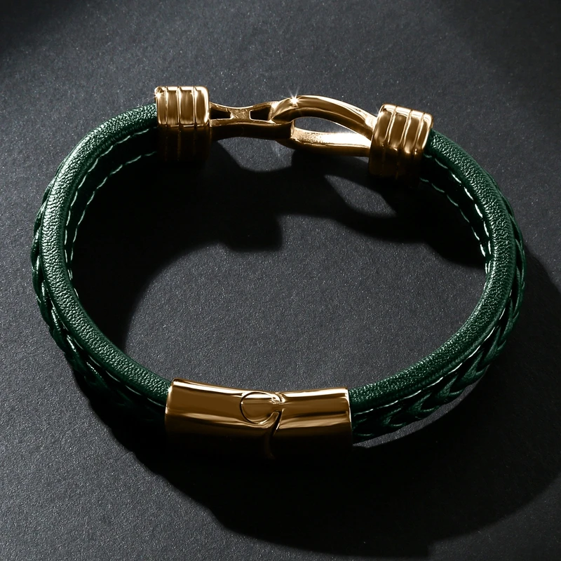 Двухслойные плетеные браслеты из натуральной кожи для мужчин, ювели...