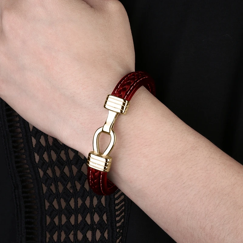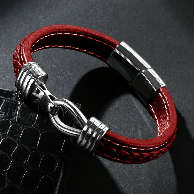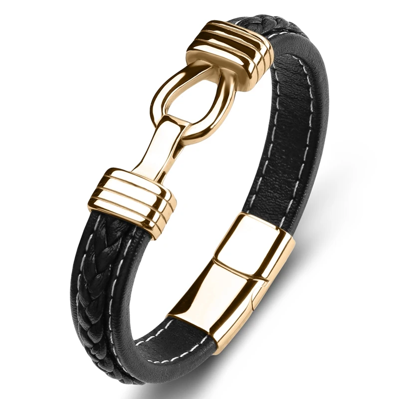 Простой дизайн, плетеный кожаный браслет, мужские повседневные ювелирные изделия в стиле панк из нержавеющей стали, магнитный мужской модный браслет, P115