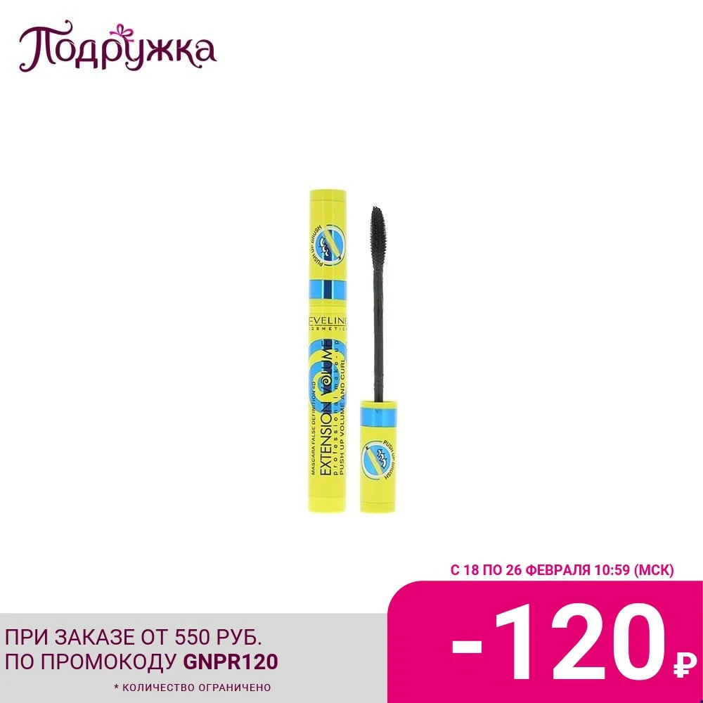 Тушь для ресниц EVELINE EXTENSION VOLUME с эффектом пуш-ап черная