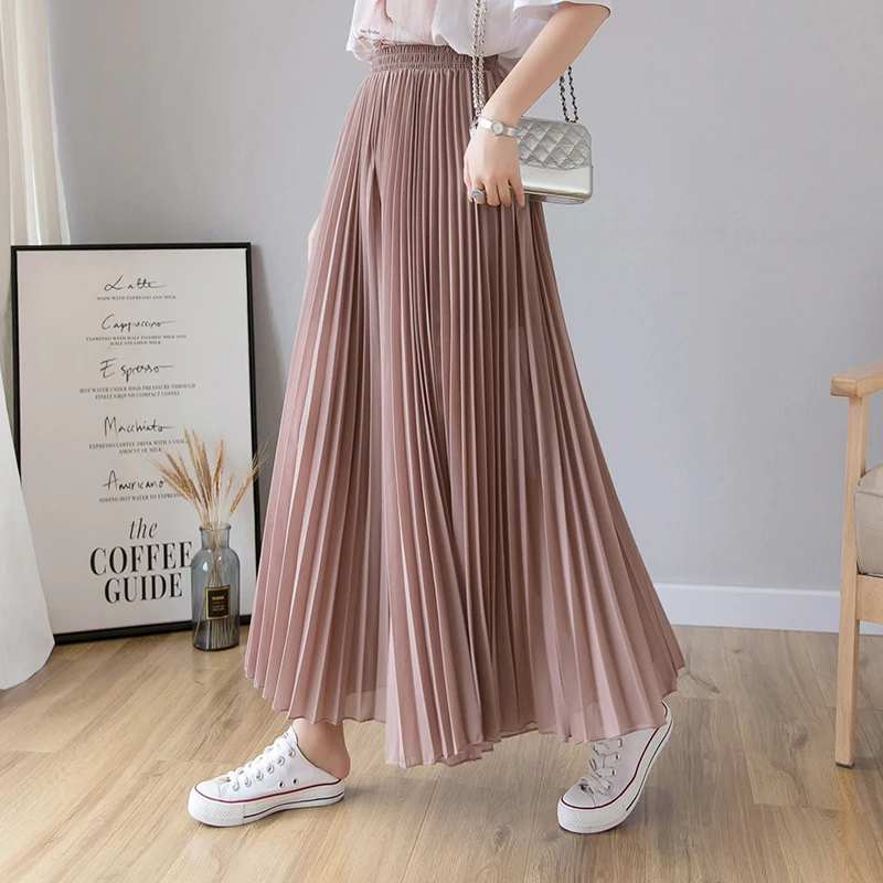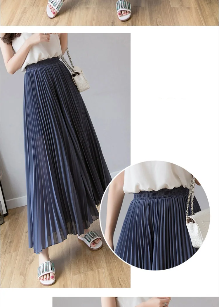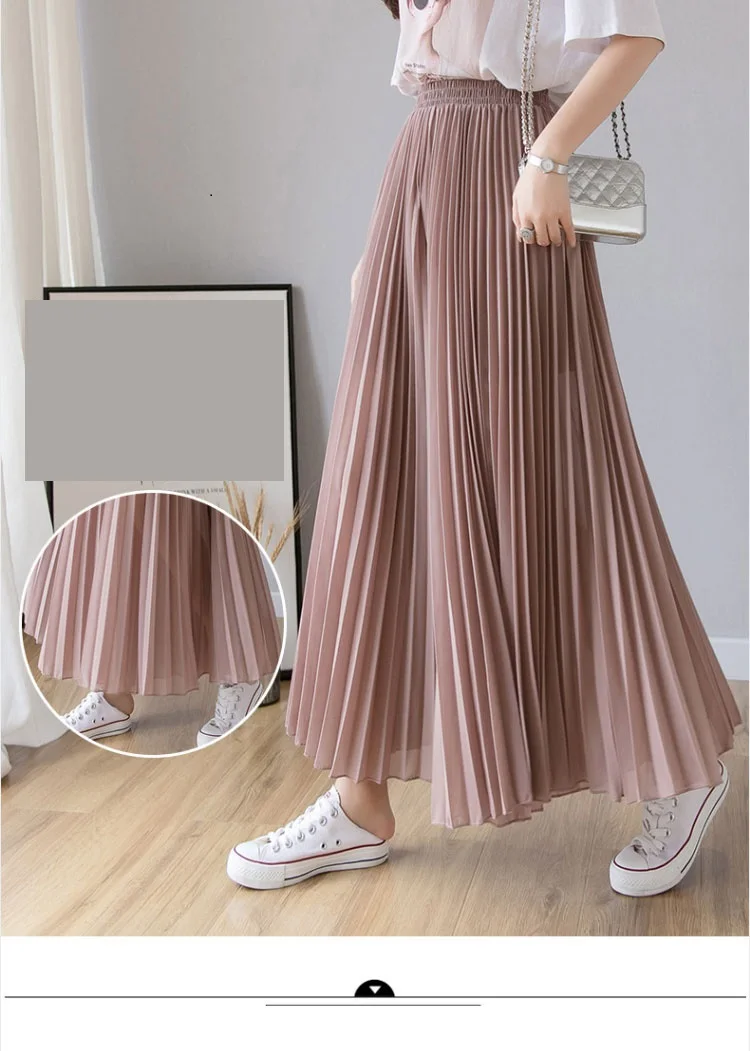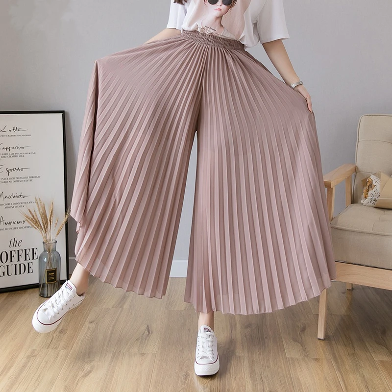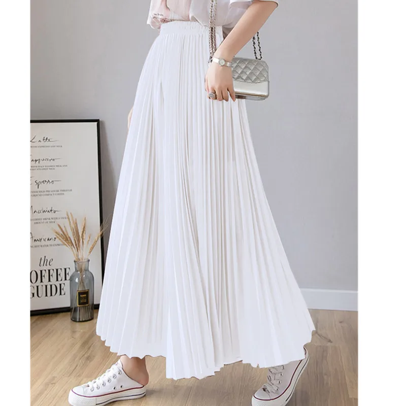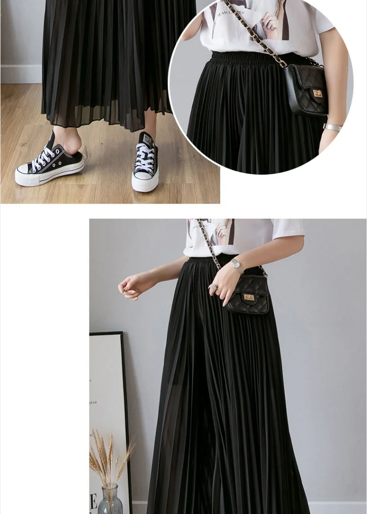 Летние тонкие шифоновые плиссированные широкие брюки женские черный, белый цвет с высокой талией размера плюс 6XL Коллекция свободных однотонных повседневных пляжная Женская юбка-брюки