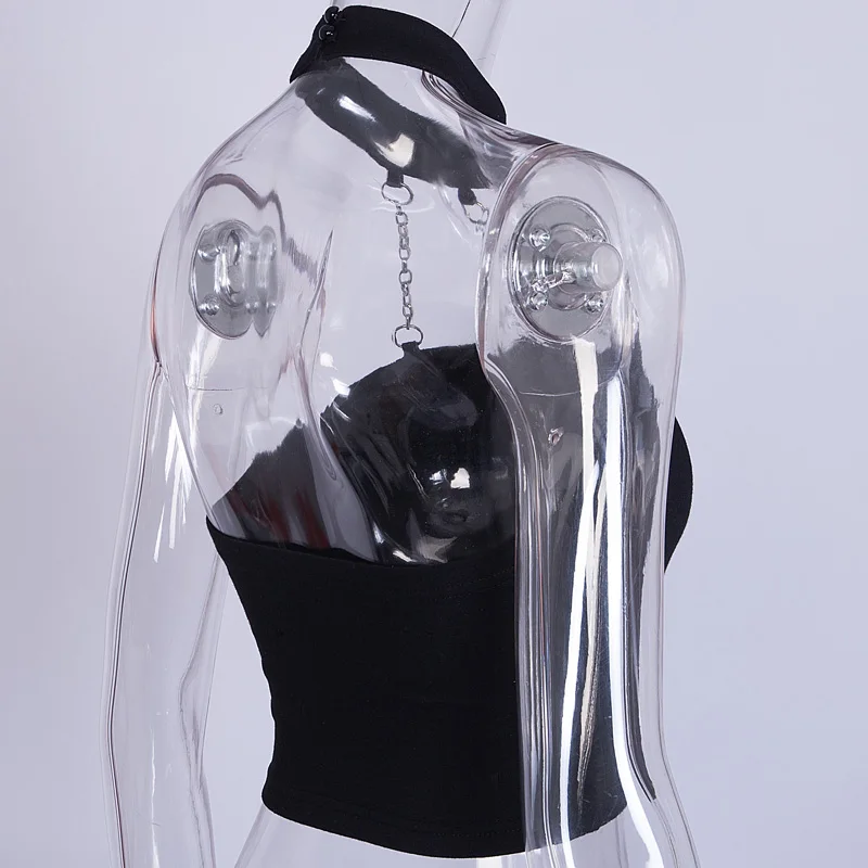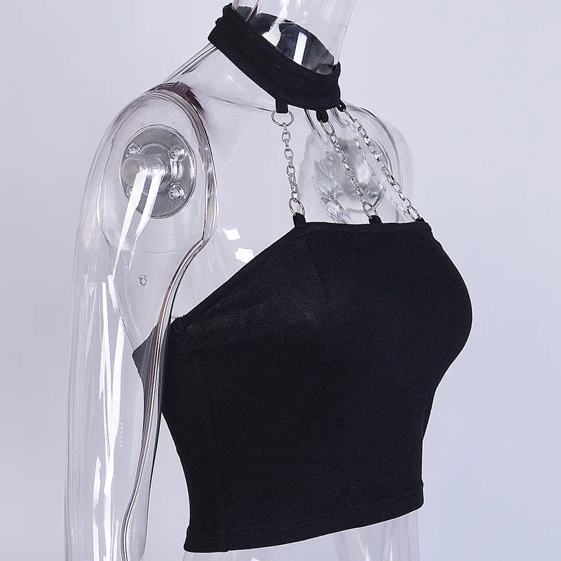 Кроп-топ Kpytomoa летний в стиле панк, с бретелькой через шею и цепочкой, женский жилет с бретельками на груди, сексуальная красивая спина для женщин, Новинка
