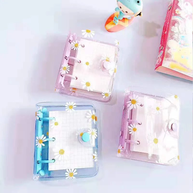 Прозрачная папка из ПВХ мини-размера, Обложка для книг, папка с пружинными листами, папка для заметок с маргаритками