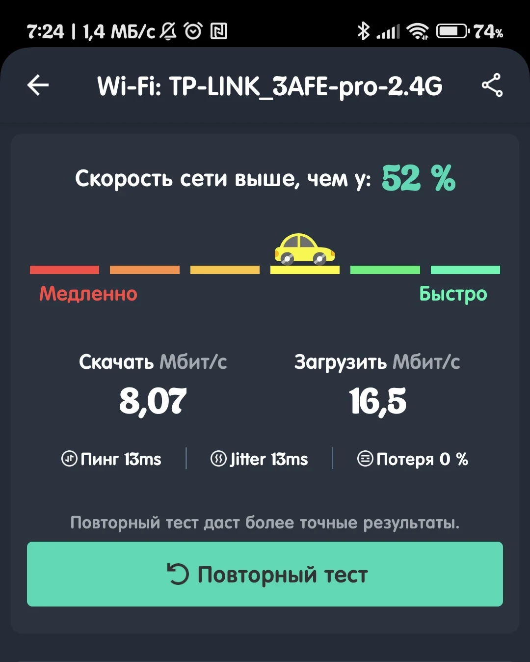 Подключен к 1 Гб скорость, от ретранслятора выходит на 5 Гб Wi-Fi около 39 Mb после перехода на 2,4 ГБ выходит из ретранслятор около 12 МБ... Připojeno на 1 ГБ síť z repeatru leze на 5 Гб Wi-Fi cca 39 Mb на 2,4 ГБ Wi-Fi leze вен cca 12 МБ, slabota...