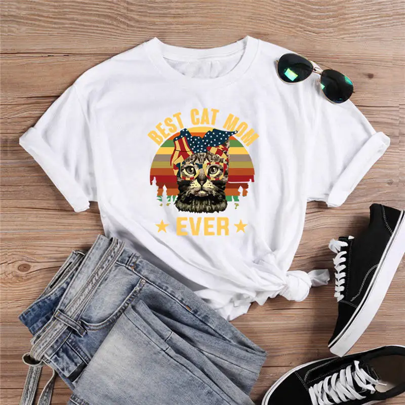 Женские Best кошка мама когда-либо топ с цветочным принтом повседневные Забавные футболки женские Hipster буквенный лозунг летняя хлопковая уличная футболка с круглым вырезом