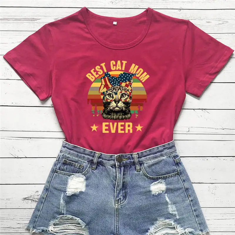 Женская футболка с надписью «Best Cat Mom Ever», Повседневная забавная футболка с цветочным принтом, хипстерский буквенный лозунг, летняя хлопковая уличная футболка с вырезом лодочкой