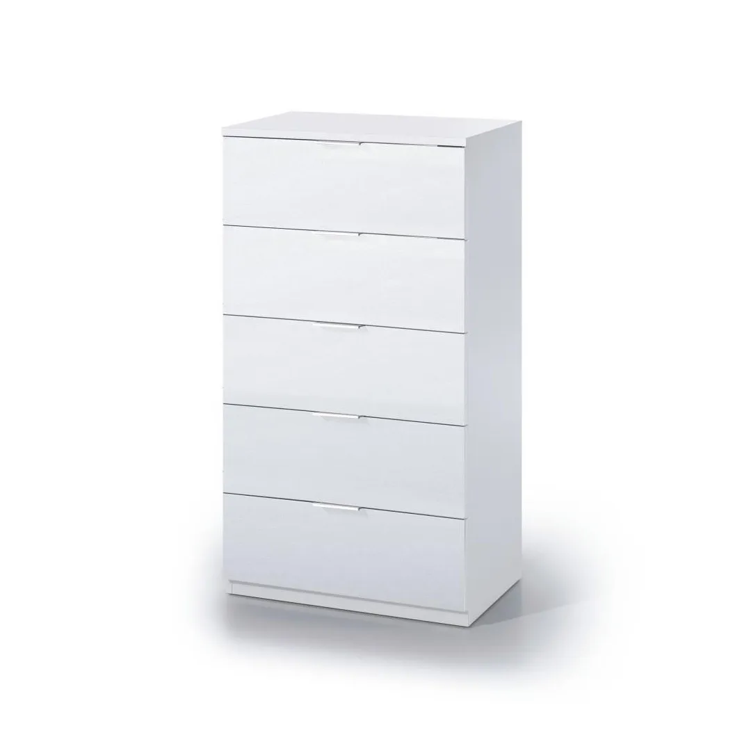 It is a comfortable Nordic and modern style crafted in melamine. It offers you ample additional storage space to complement that of your closet that will also help you decorate your room. The dresser includes 5 large drawers, with metal sliding guides, aluminium handles and white interior finishes that support a maximum weight of 5 kg each. In addition, it will protect your floor when you have to move it as it includes stops in anti-noise and anti-scratch ABS at the bottom. This furniture requires assembly (includes instructions and all necessary hardware) and is subject to after-sale service 100% satisfaction