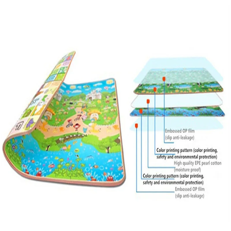 Коврик игровой детский двусторонний водонепроницаемый, 200x180 см