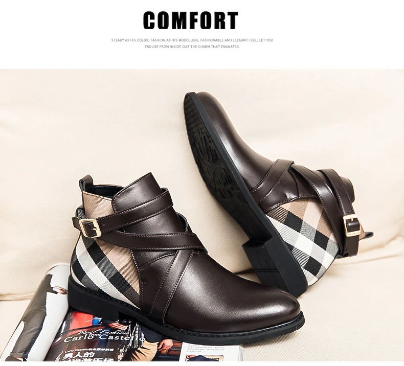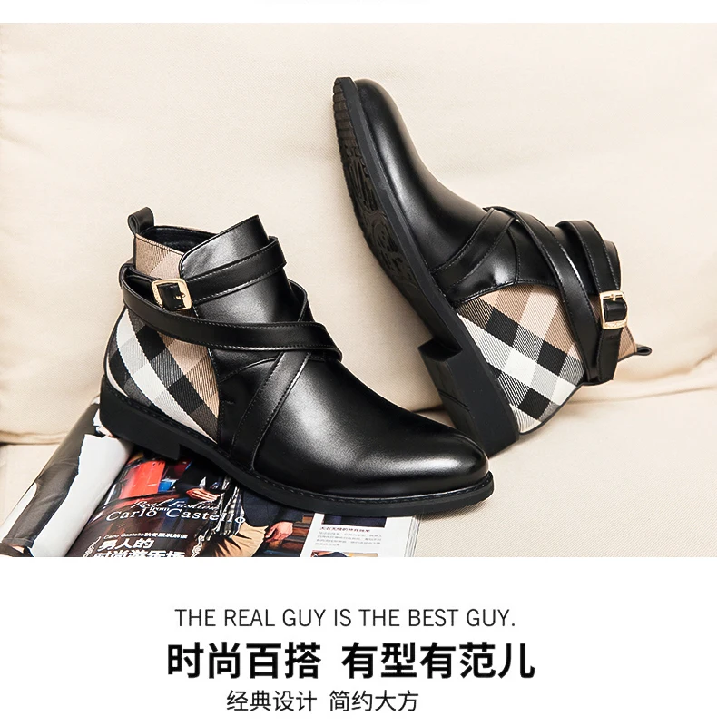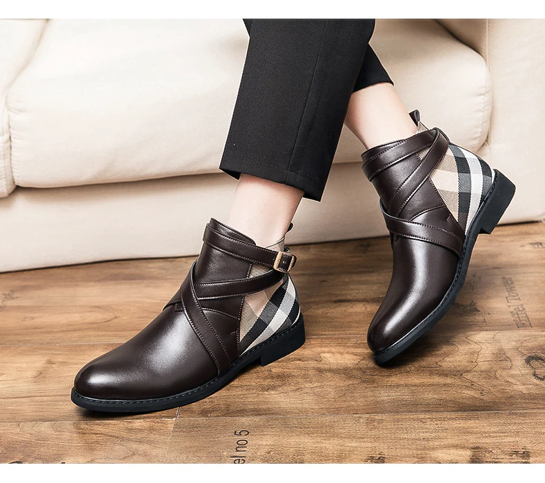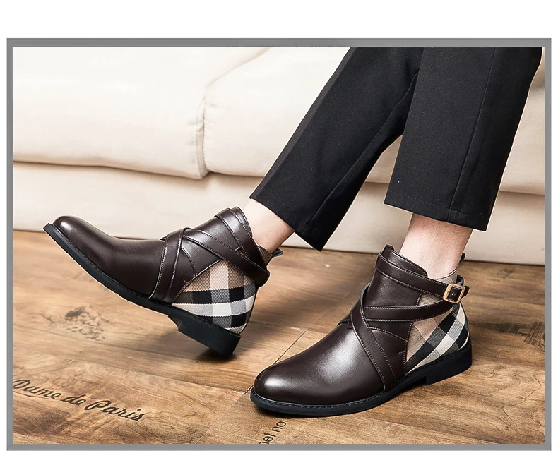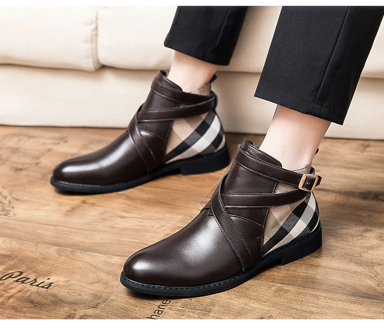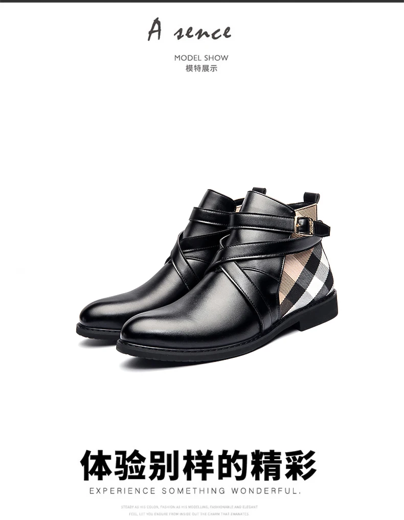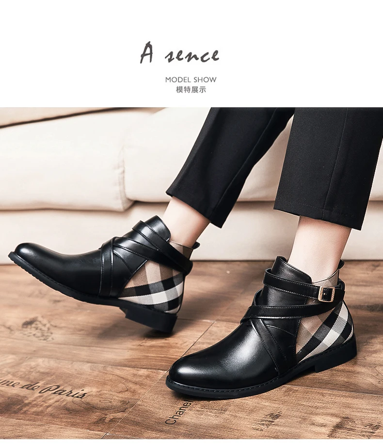 Мужские ботильоны из ПУ кожи, с пряжкой и ремешком