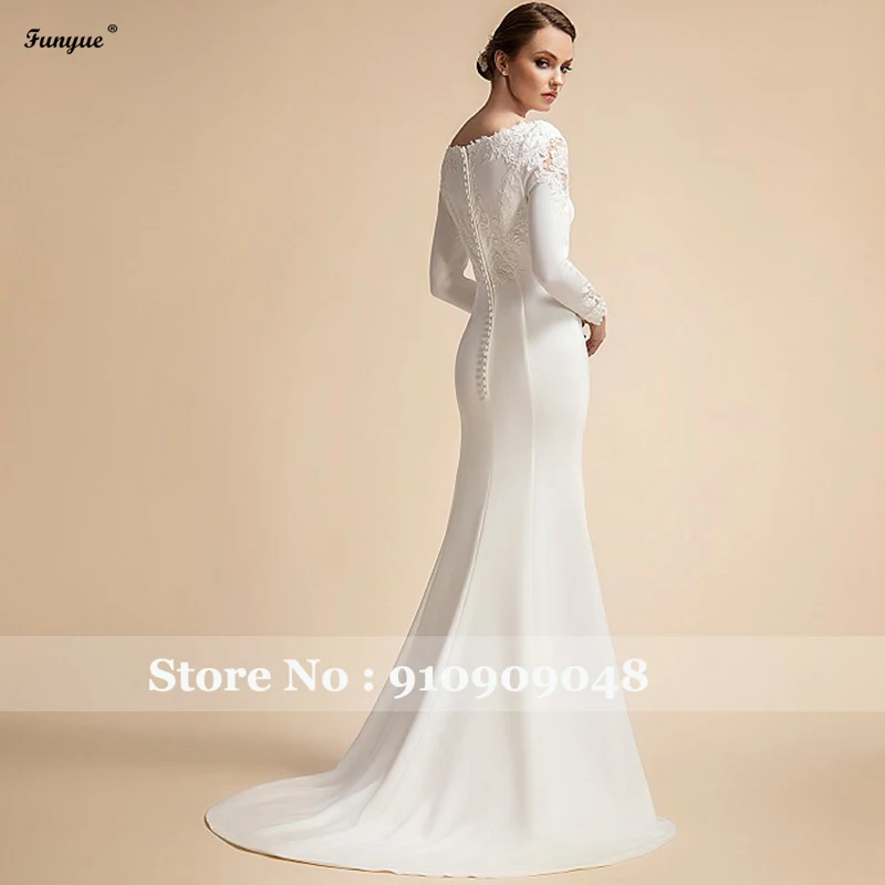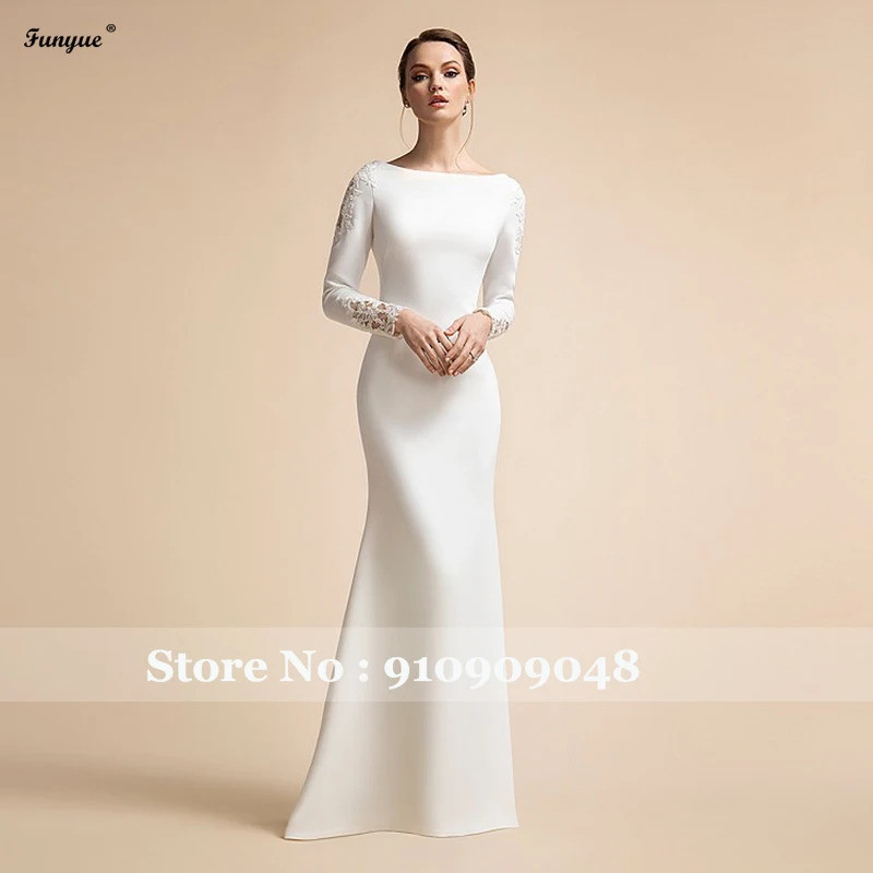 Женское атласное свадебное платье It's yiiya, белое платье в мусульманском стиле с длинным рукавом и юбкой-годе на лето 2021