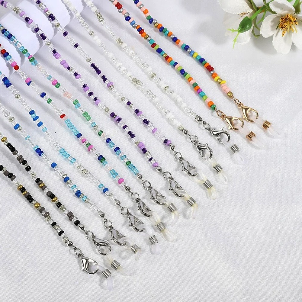 Новинка 2021, богемные цветные Нескользящие очки с бусинами, цепочка, модные солнцезащитные очки, маска, подвесная цепочка, популярное ожерелье, аксессуары для очков