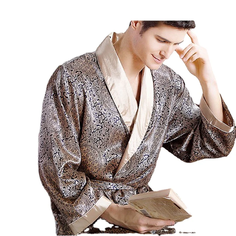 Ночная рубашка мужская атласная, халатный халат-кимоно, повседневна...