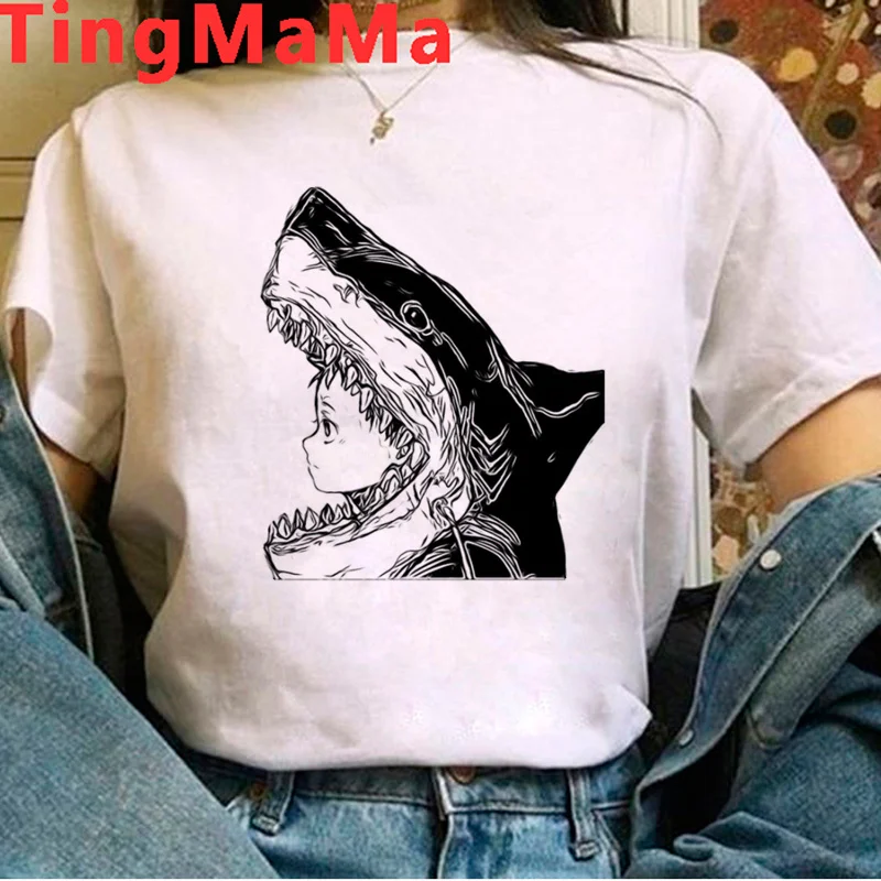 Футболка женская Kawaii, с рисунком кота и акулы, в стиле аниме Хар...