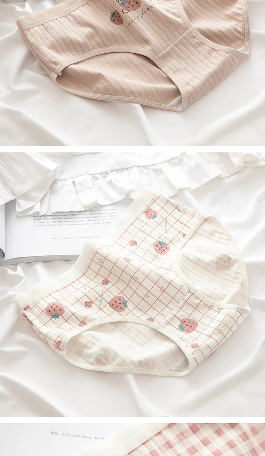 Хлопковое женское нижнее белье, с принтом клубники, удобное, мягкое...