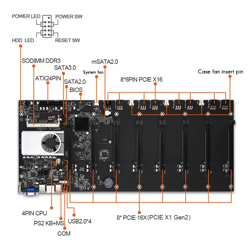 BTC-T37 mining machine set 8, графический слот для карты памяти DDR...