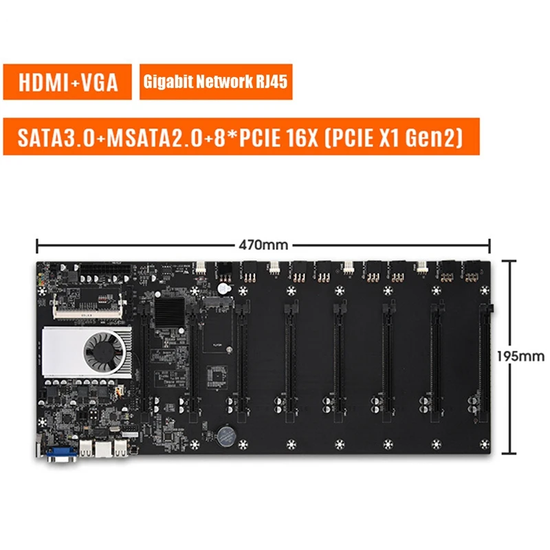 BTC-37 материнская плата для майнинга 8XPCIE16X, слот для карт изображений DDR3, память VGA + HDMI, настольная материнская плата для майнинга