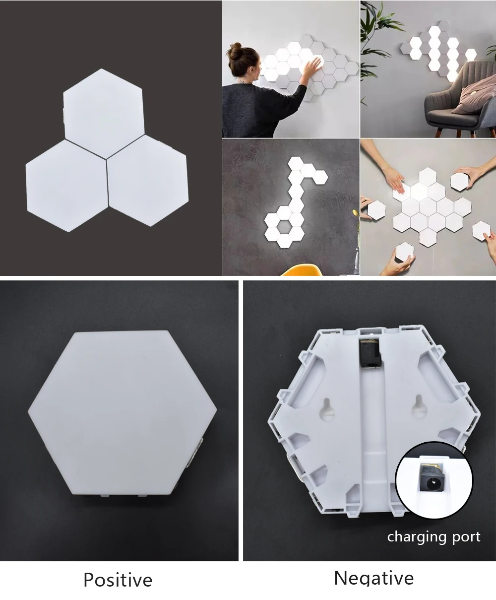 -Продукт состоит из нескольких пластиковых шестигранников, которые могут быть соединены магнитами и блокирующими узорами, чтобы создать настенный светильник с сенсорным экраном. Магниты, которые составляют физическое соединение между компонентами, также позволяют току переходить от одного к другому.-С источником питания продукта, каждый компонент включен и выключен с емкостным сенсорным датчиком. Основная идея продукта заключается в том, чтобы позволить пользователям преобразовывать внутреннюю архитектуру пространства в источник-светильник. Это дает пользователю возможность осветить тропинку, которую они трогают, просто сползая поверхность стены. Превратите внутреннее здание в холст и позвольте пользователю использовать руку в качестве кисти.