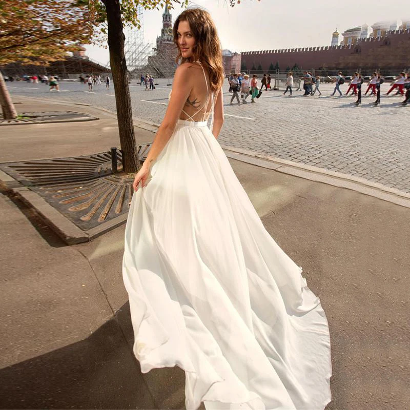 Пляжное свадебное платье 2021, сексуальное шифоновое платье А-силуэ...