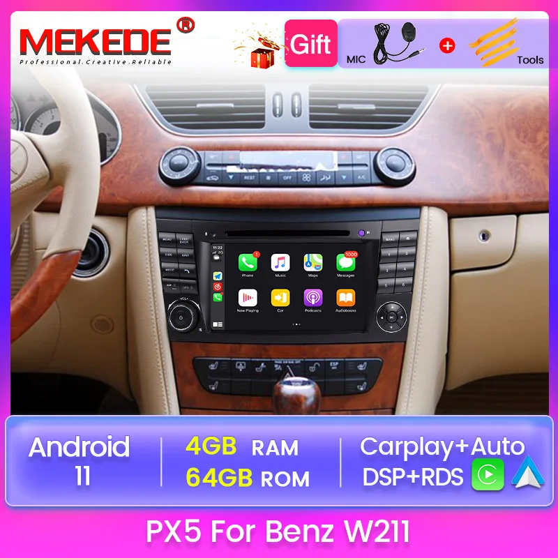 PX5 DSP RDS Android 11 4 + 64G Автомобильный DVD мультимедийный плеер для Mercedes Benz E-Class W211 W219 E200 E220 E300 GPS навигация WIFI BT