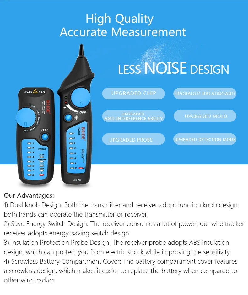 Кабельный тестер BSIDE FWT81 + AVD06, прибор для обнаружения телефо...