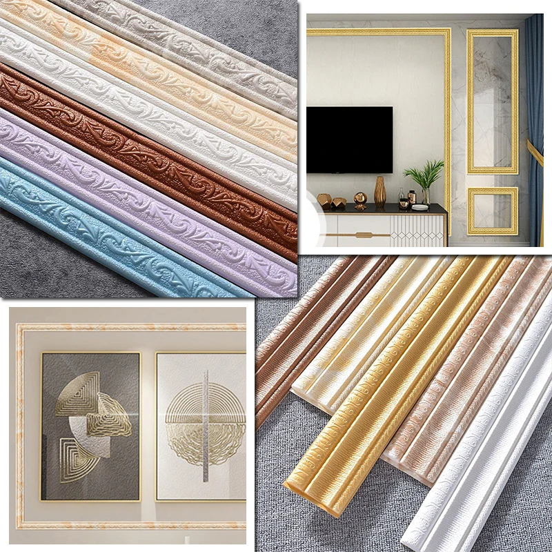 3D пена тиснением угловая линия самоклеящиеся настенные талии Водонепроницаемый Декор стены Стикеры границы боковая полоса