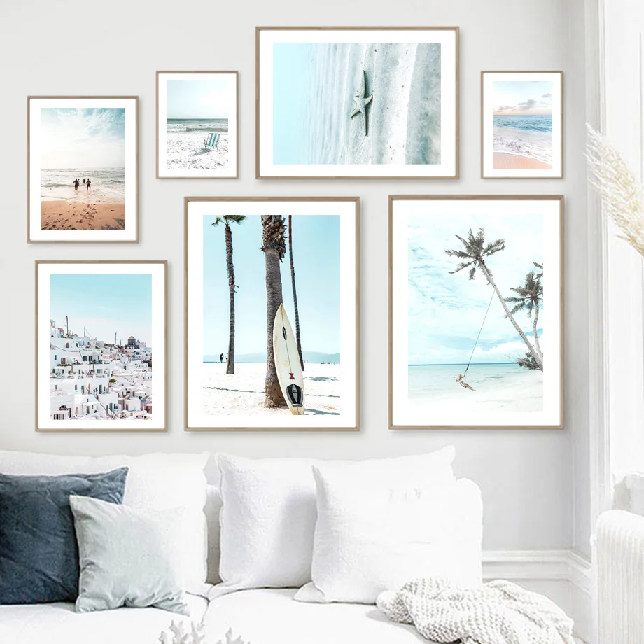 Настенная живопись на холсте, Пляжная морская доска для серфинга, морская звезда, кокосовое дерево, скандинавские плакаты и принты, настенные картинки для декора гостиной