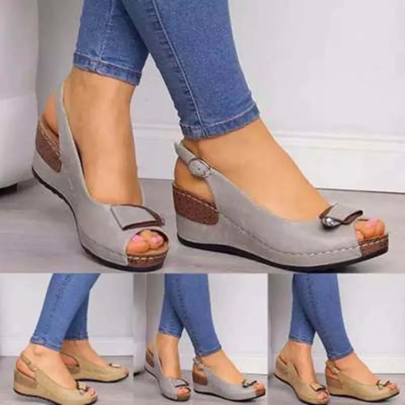 Новинка 2021, женские летние сандалии на танкетке, сандалии с открытым носком и пряжкой, женская обувь, повседневные модные однотонные пляжные сандалии для женщин