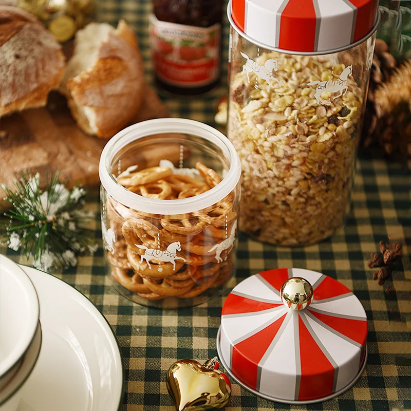 Стеклянный контейнер для хранения Хранение на кухне Рождественский подарок, Рождественское украшение, банка для хранения бутылок, креативная карусель для хранения еды, бисквитов, конфет