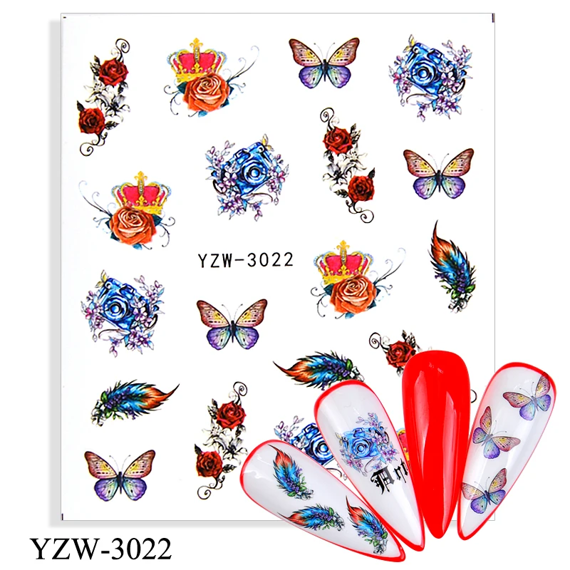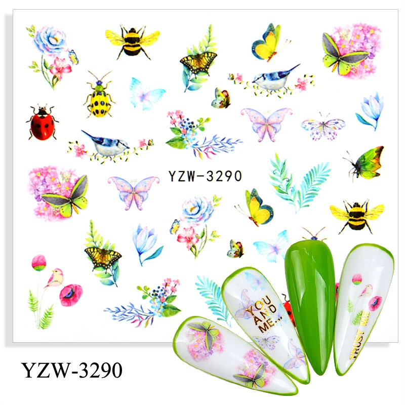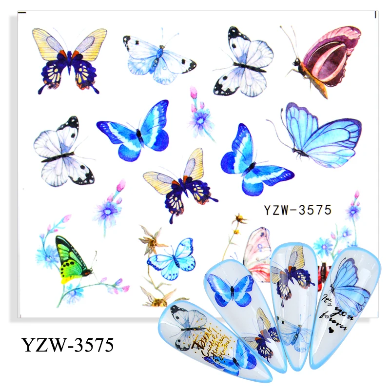 3D акварельные бабочки слайдер дизайн ногтей переводная наклейка наклейки разноцветные бабочки, цветы украшения ногтей тату маникюр