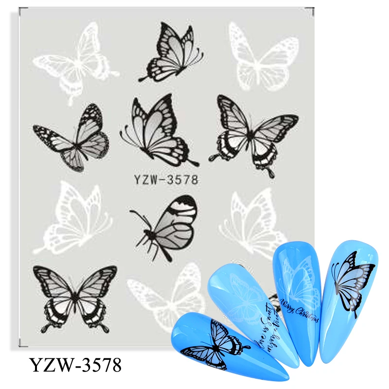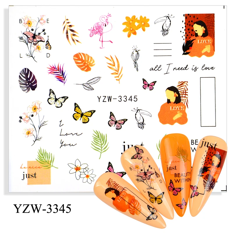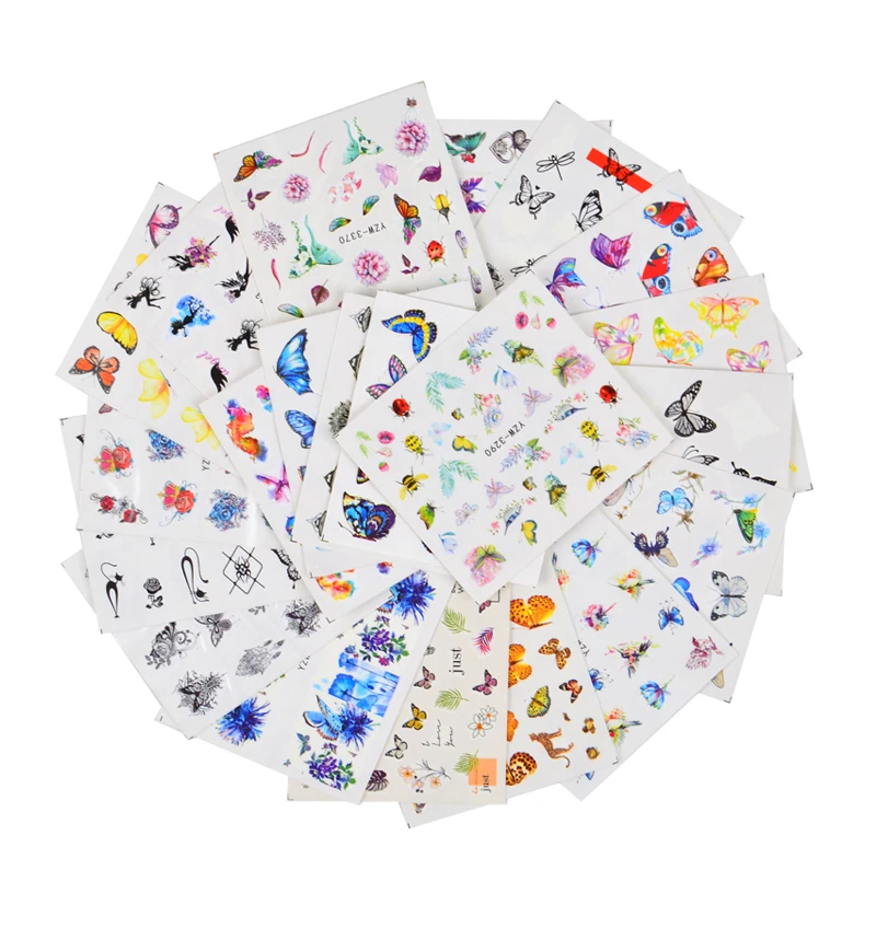 4 шт.лот наклейка для ногтей в виде бабочки, цветок, лист, водная н...
