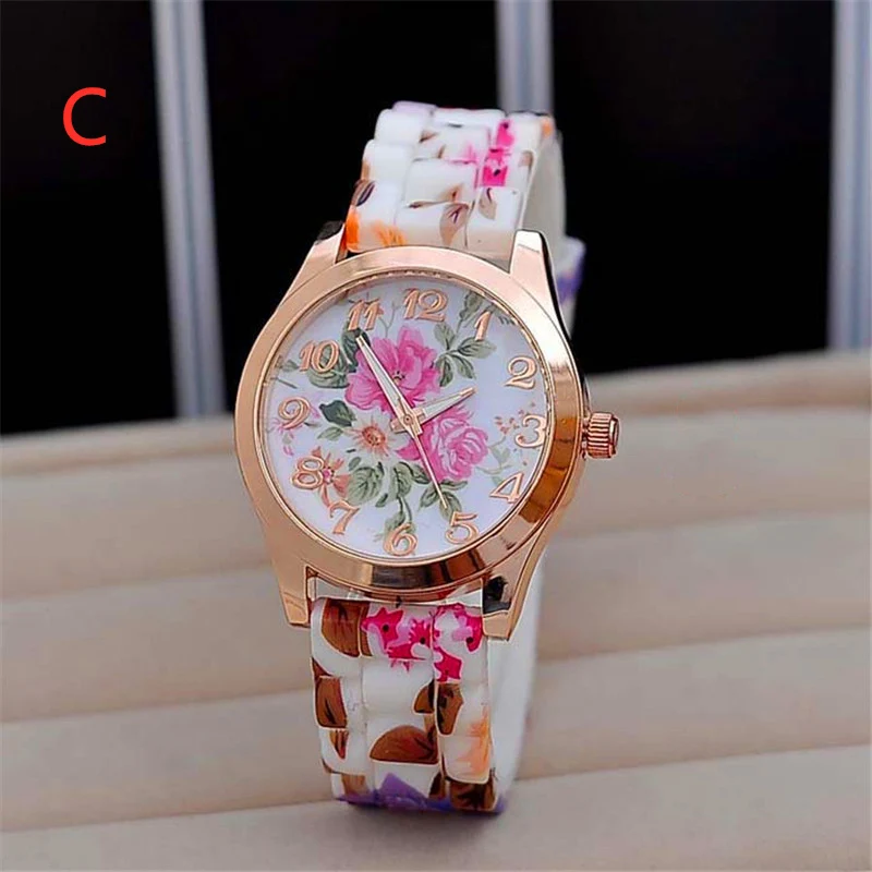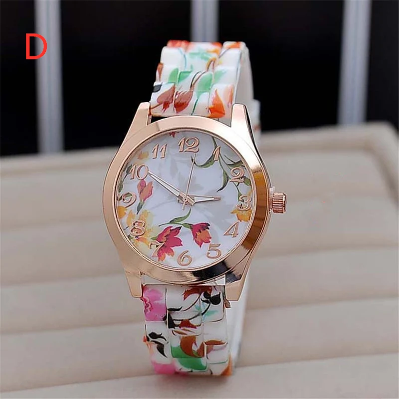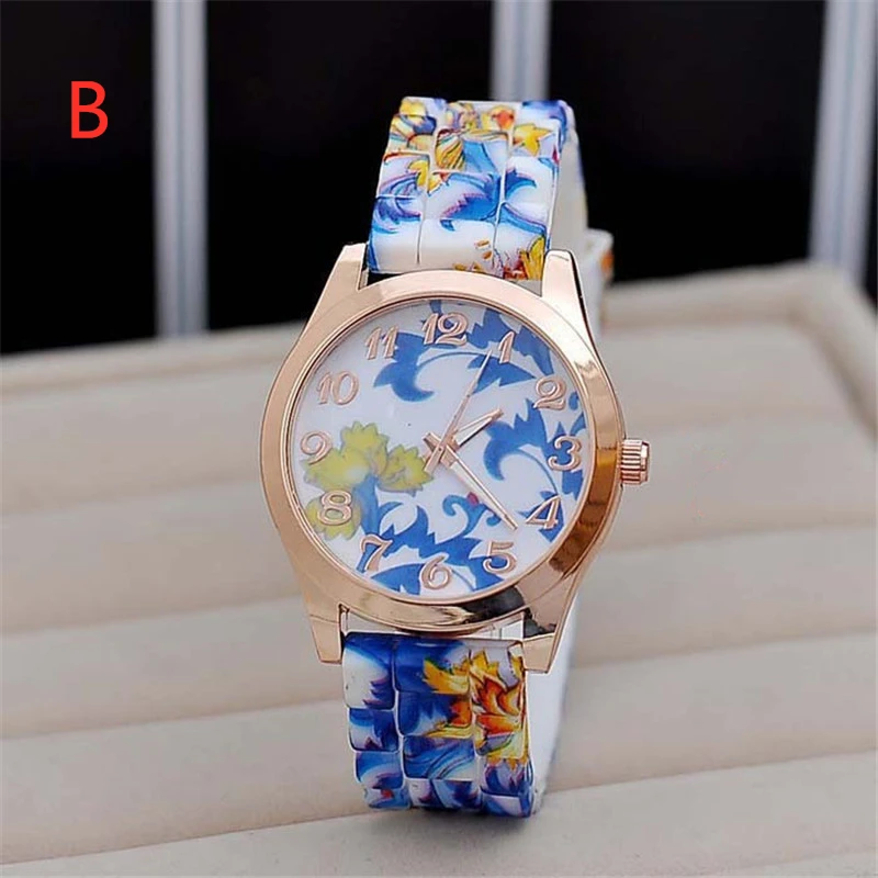 Женская Мода тисненые цветы небольшой свежий Печатный ремень Студенческие Кварцевые часы мужские часы montre femme Reloj Mujer