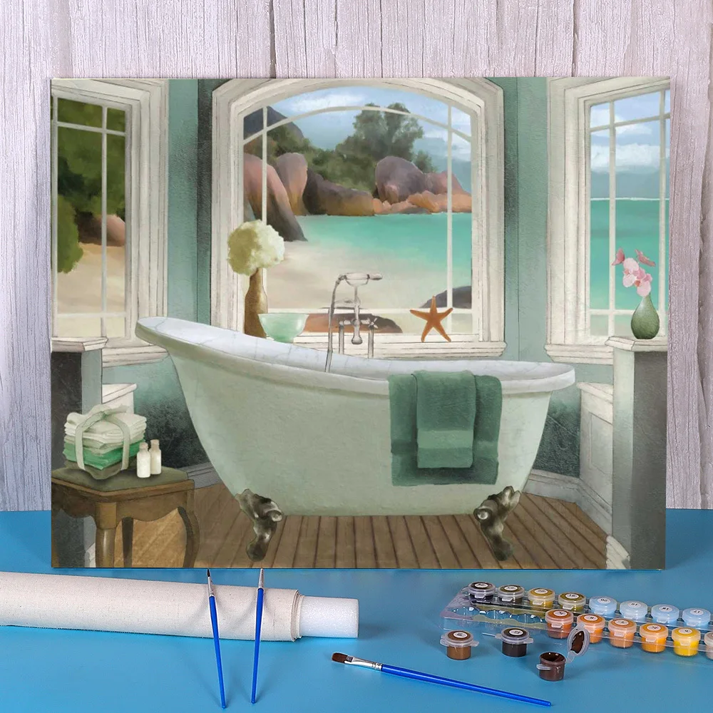 Пейзаж Ванная комната DIY Краски по номерам посылка акриловые Краски s 40*50 масла Краски ing декоративные Картины для взрослых декоративно-прикладного искусства