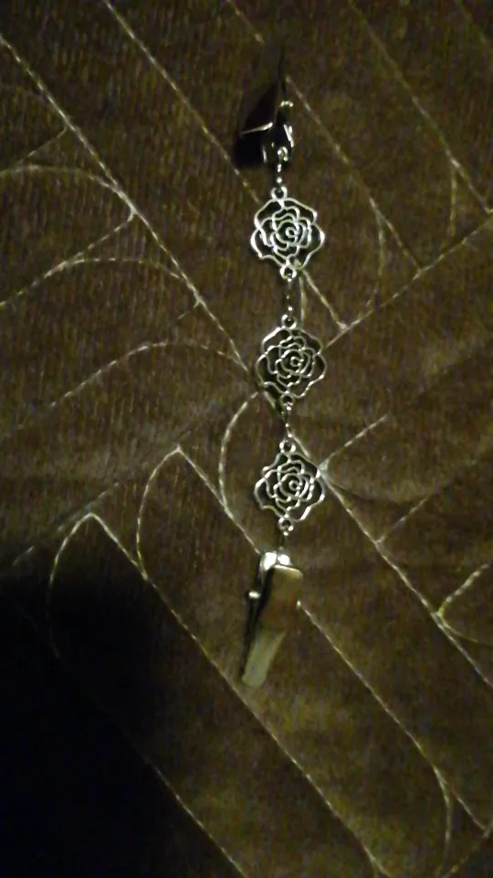 Прекрасный зажим. Смотрится очень нежно.Подойдет для легкой блузки,кофты и пиджака. Прижелании можно укоротить.