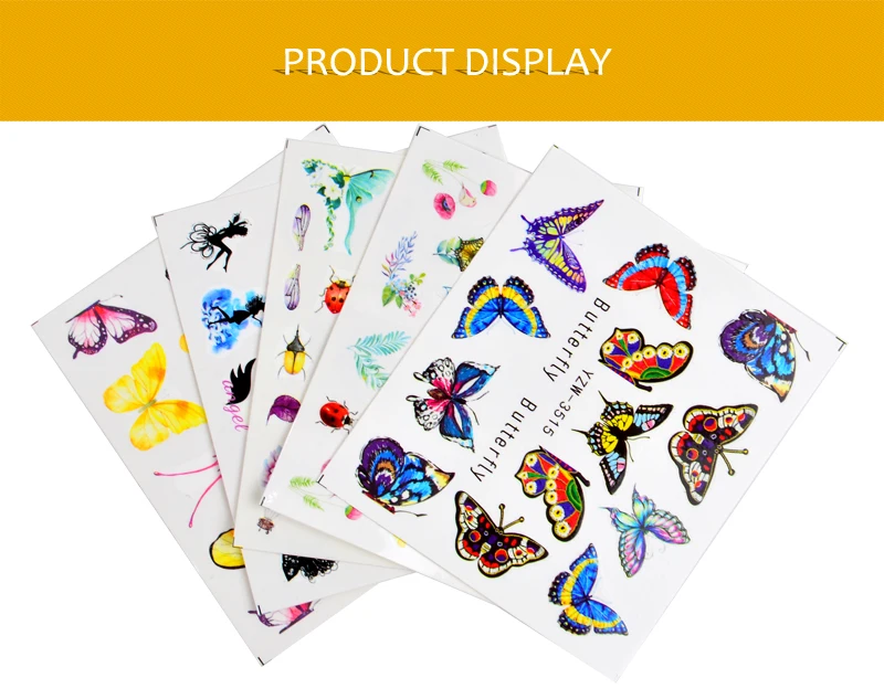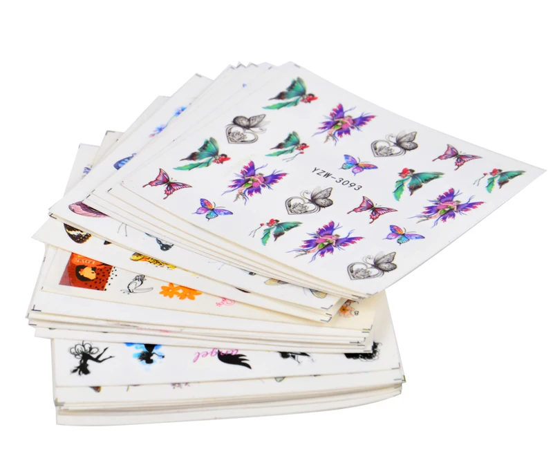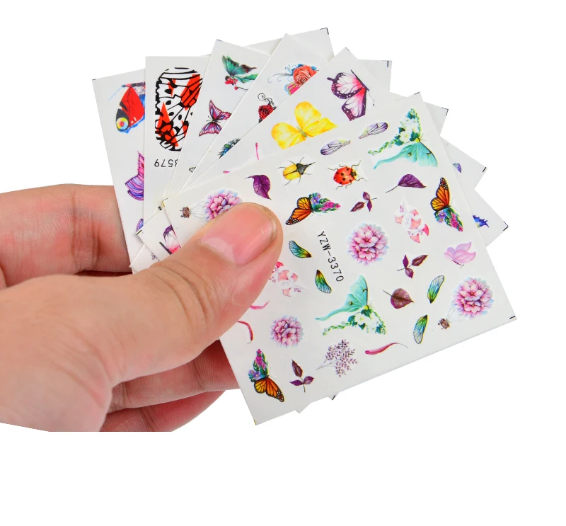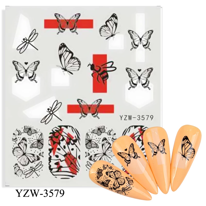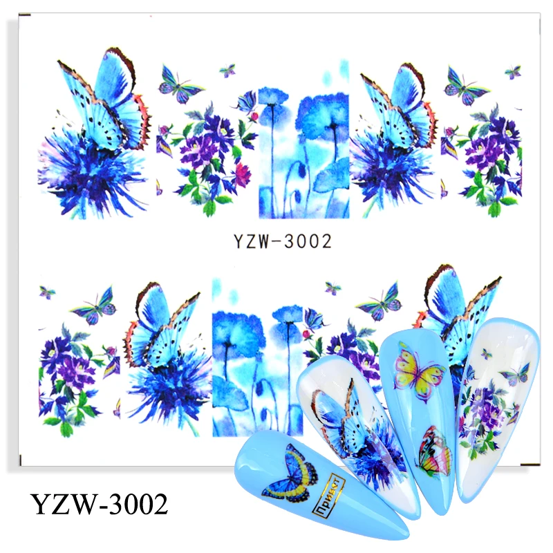 1 лист синие наклейки для ногтей бабочки цветок насекомых зеленый лист черный розовый слайдер для ногтей Вода Маникюр наклейки DIY украшения