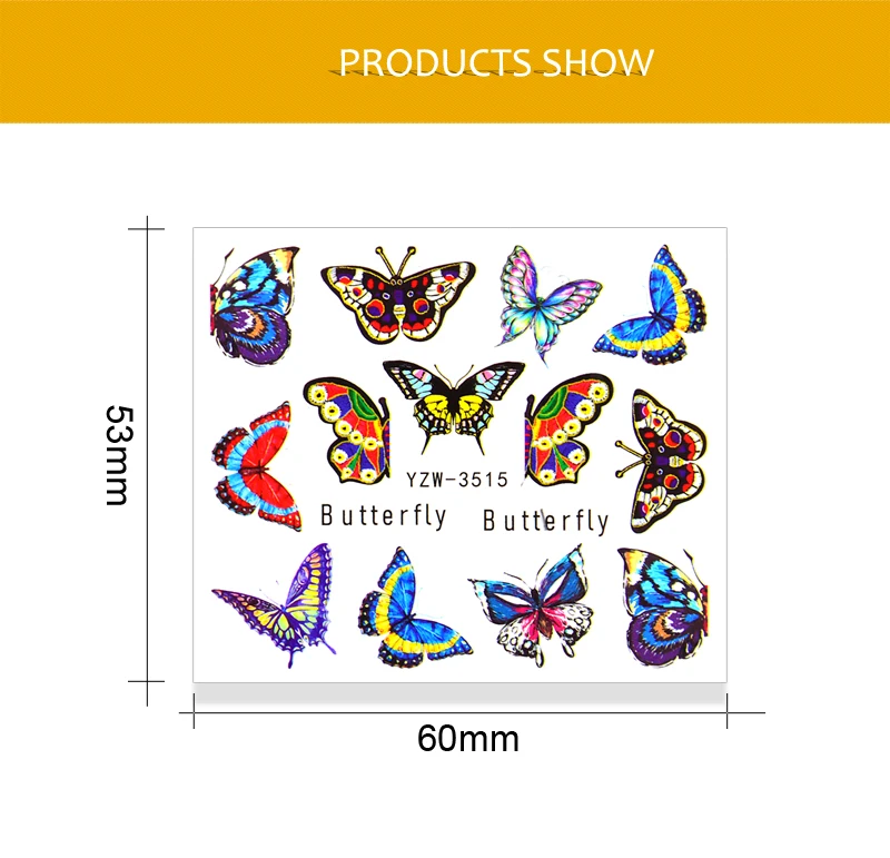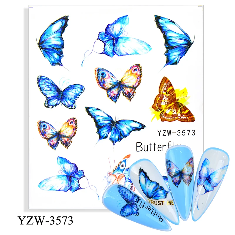 3D акварельные бабочки слайдер дизайн ногтей переводная наклейка на...