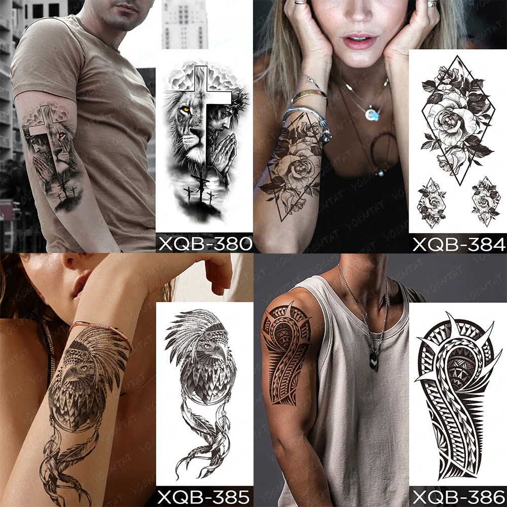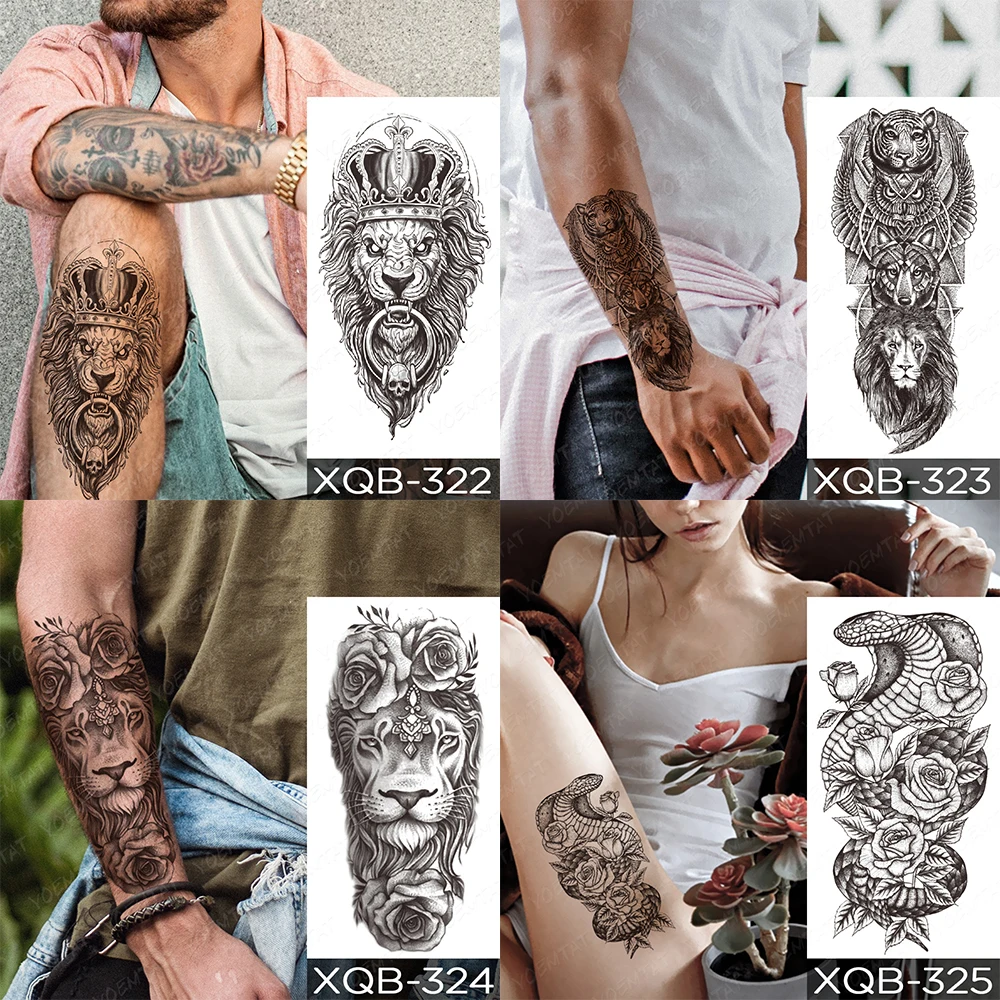 Водонепроницаемый временный рукав, тату на руку, наклейка, волк, тень, лоза, лес, тигр, переводная татуировка, искусственная татуировка для боди-арта, для мужчин и женщин