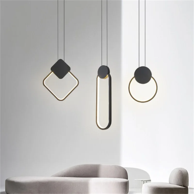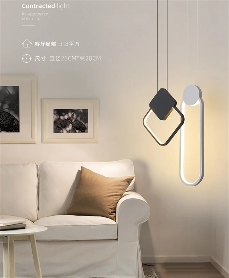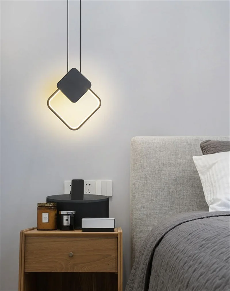 Скандинавский подвесной светильник LED черный белый квадратный круглый подвесной светильник ing для комнаты прикроватный длинный провод высокий Потолочный подвесной светильник Декор