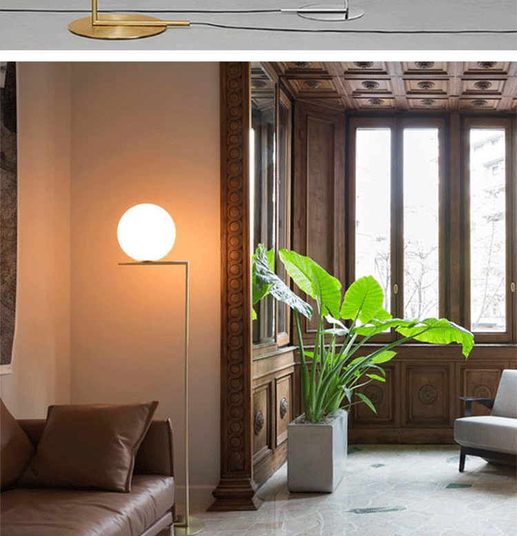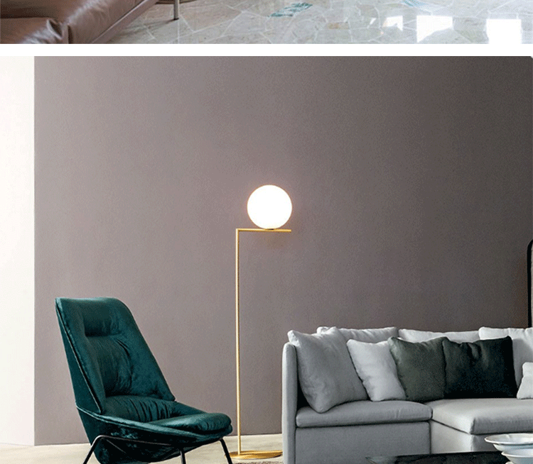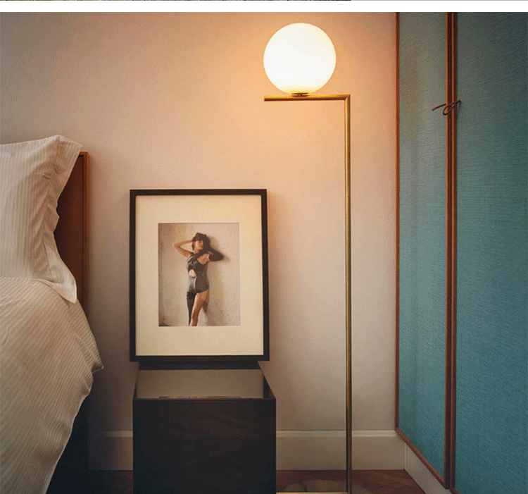 Простой современный вертикальный напольный светильник, модель гостиной со стеклянным шаром, лампа для гостиной, спальни, кабинета