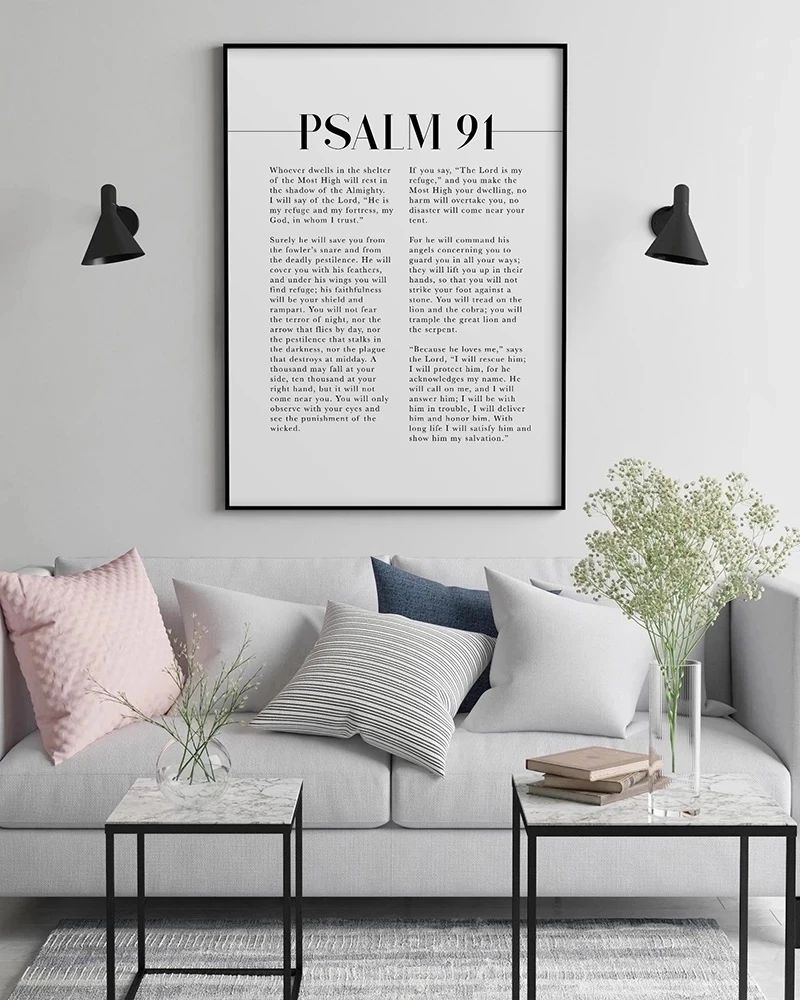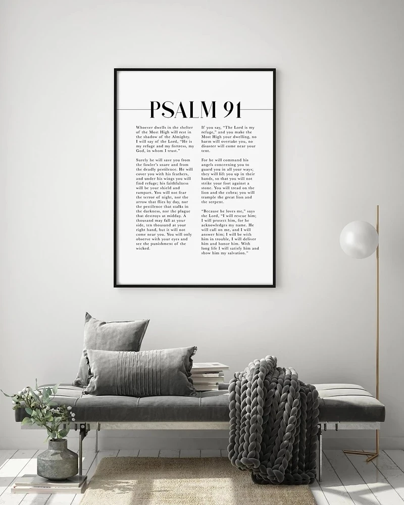 Иллюстрация стен из Библии с Псалом 91, который живет в укрытии, ил...