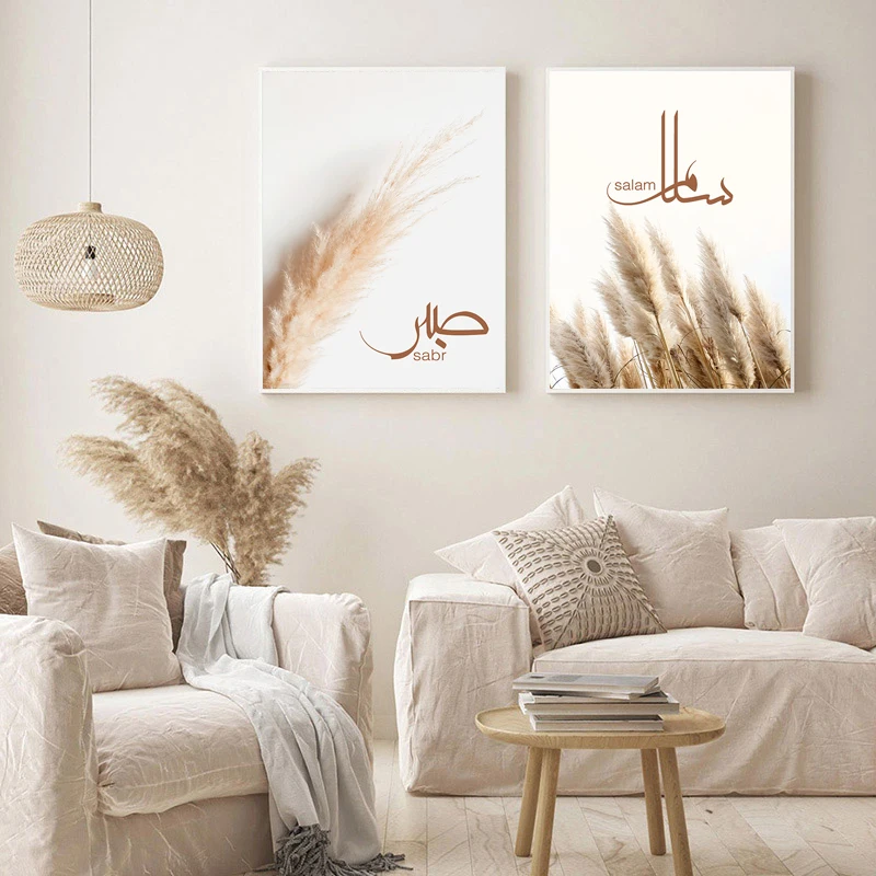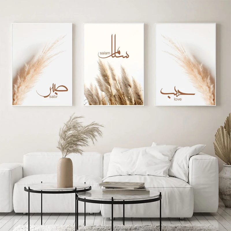 Богемная трава язычок исламский бежевый настенный художественный холст любовь Салам сабр каллиграфия плакат печать картины для спальни домашний декор