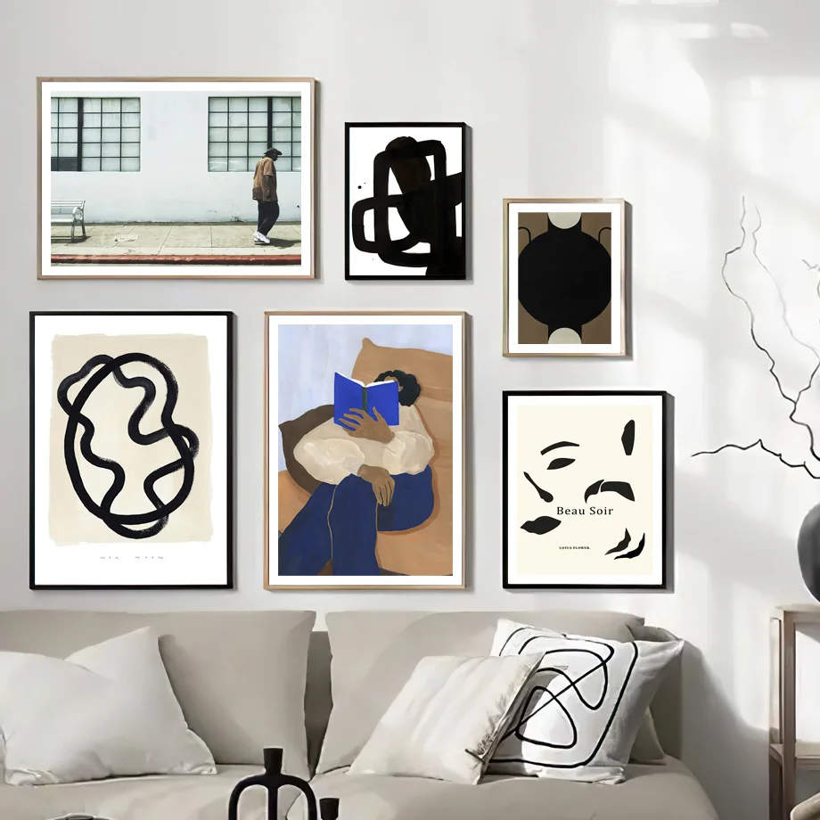 Минималистичный абстрактный изгиб, линия рисования, Постер в скандинавском стиле, девушка, чтение, настенный художественный принт, холст, живопись, Декор, картины для гостиной