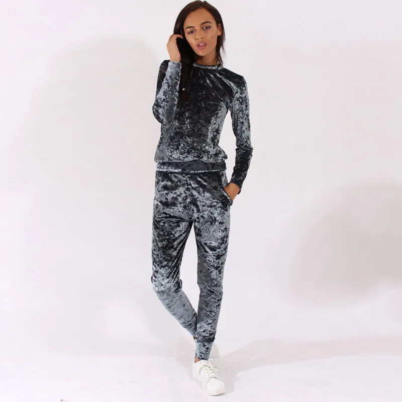 2021; Сезон осень-зима; Модные женские спортивный костюм бархатная ...
